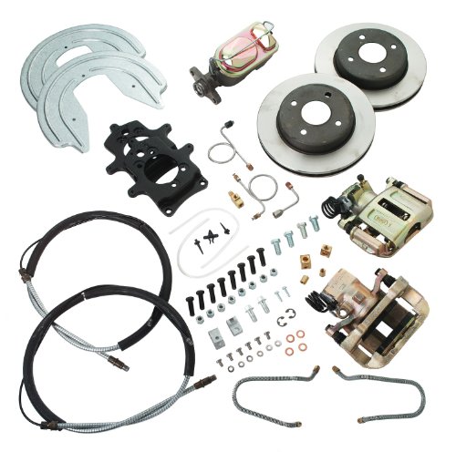 #Rear drum to disc brake conversion kit for 4 lug axles fits both 4 and 8 cylinder cars. All hardware is included. Master cylinder also included. Rotors available with optional turbo slotting and extra life plating.