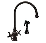 | ✚✚✚ Whitehaus Dual Handle Faucet with Gooseneck Swivel Spout & Side Spray WHKSDCR3-8101-PC Dual handle faucet with long gooseneck swivel spout, cross handles and solid brass side sprayVintage III CollectionTwo Cross HandlesTraditional Swivel SpoutSolid BrassSide SpraySpout Lenght: 8-1/8"Height: 9-7/8"