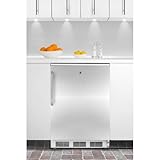 Summit Bi540lsstb Compact Refrigerator - Stainless Steel Door / White CabinetSummit BI540LSSTB Compact Refrigerator - Stainless Steel Door / White Cabinet. BI540LSSTB. Refrigerators. This Summit professional refrigerator is a large compact 24 inch wide under-counter refrigerator-freezer with a zero degree freezer with fully automatic-defrost, suitable for recessed (built-in) or free-standing use. The Summit compact refrigerator includes a wrapped stainless steel door with a front-mounted lock, a professional stainless steel handle, White cabinet finish, wrapped stainless steel door with 12 inch stainless steel towel bar handle and front lock, and finished white sides and top. Also, the Summit compact refrigerator has a reversible door swing, interior light, flat door liner and large shelves, adjustable shelves, door storage, tall bottle storage, vegetable/fruit crisper, an adjustable thermostat, and an old wall evaporator is hidden behind the inner wall. The Summit refrigerator is ETL Sanitary and 100 percent CFC free. Dimensions: (34. 5 inches H, 23. 63 inches W, 23. 5 inches D ).