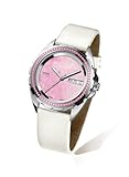 | ✚✚✚ 121Time - Challenger Lady Quartz classic - Swiss Made Every 121Time watch is assembled by certified watchmakers and follows the Swiss quality standards. Sportiness and femininity. A watch with a strong character and a stylish design that reflects your sporting allure and feminine appeal, especially with its mother of pearl and diamond versions. Case: high grade corrosion-resistant stainless steel (316L) reducing the risk of allergy.. Case: Stainless steel 316L reducing risks of allergy. Movement: Quartz ETA 955.422 Swiss Made. Bezel: Steel incrusted with 68 genuine pink sapphires. Dial: Pearl, genuine japanese mother of pearl. Hours and minutes hands: Luminescent. Strap: Natural calfskin leather, extra soft. Buckle: Tang-type buckle. Water resistance: 3 ATM (100 feet). Glass: Hardened mineral crystal. Case: Case diameter (mm): 31, Case height (mm): 9. Movement: Movement accuracy : 32768 Hz, Battery life : 68 months. Bezel: 0.25 carat with certificate of authenticity. Water resistance: 3 ATM (100 feet). Glass: Hardened mineral crystal : 500 to 800 Vickers hardness. Movement caliber: ETA 955.422 Swiss Made. Type of technology: Quartz 32'768 Hz. Battery end-of-life display (EOL: The second hand jumpes every 4 seconds to indicate the batteries low energy level. Calendar: Mechanical day|date window at 3 o clock.