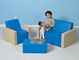 | ✚✚✚ TRANQUIL KINDER TRIO Sand/Blue colored furniture set is ideally sized for ages 4 thru 10. Solid foam construction with no hard wood edges or staples. Seat height 12".
