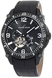 | ✚✚✚ Pierre Petit Men's P-803A Serie Le Mans Automatic Skeleton Genuine Leather Watch Projecting luxury, style, and Austrian quality, the Pierre Petit Men's P-803A Serie Le Mans Automatic Skeleton Genuine Leather Watch bestows its wearer with sophistication and confidence. Featuring a magnificent black sunray dial with silver-tone indices, exhibition window, minute track on bezel and 24-hour and second sub-dials, a bold masculine yet classic countenance is created. This fine piece of engineering includes: a brushed and polished black PVD stainless steel case, protective sapphire crystal window, precise automatic movement, and 330 feet water resistance. Closing with a reliable buckle clasp the genuine black calfskin strap completes this timepiece with aristocratic elegance. Enjoy the sheer excellence of Pierre Petit, it’s not just a wrist ornament, it is an image.