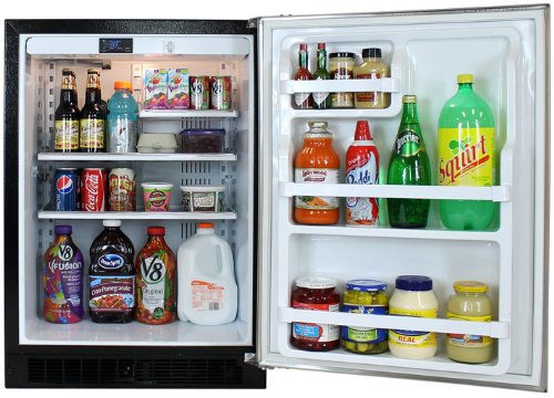 Marvel Stainless Steel Full Refrigerator Built In Refrigerator 6ARMBSFLR . Marvel Stainless Steel Full Refrigerator Built In Refrigerator 6ARMBSFLR. Includes Door 'Close Assist'. If left slightly open, the door will close. Operates in real time to actively maintain optimal preservation conditions. Amber LED temperature display. Located at the top and front for convenient access. Includes door ajar alarm. Monitors critical functions including high/low temperature. Three storage shelves are located in the door for easy access. 2 full length and 1 half length. Tall bottle storage. 2 adjustable spill-proof glass shelves. Bottom shelf can provide gallon storage. Stainless steel, white and black with complementing full length handles. Capacity: 6.1 cu. ft. Door: Self-Closing. Controls: Electronic. Temperature Display: Amber LED. Door Ajar Alarm: Yes. Door Lock: Yes. Coolying System: Dynamic with Forced Air. Interior Light: Yes. Shelf Type: Spill-Proof Glass. Shelf Quantity: 2. Door Bins: 3. Tall Bottle Storage: Yes. Defrost: Automatic. Energy Star Qualified: Yes. Width: 23-7/8. Depth: 24-1/4. Height: 34-3/4. Weight: 120 lbs. At Marvel, they believe that confining refrigeration to the kitchen is like keeping a fine wine bottled forever. Your lifestyle simply demands more: more choices, more elegance, and more quality. That's why they are proud to offer the industry's finest line of luxury undercounter refrigeration products, which free you to design refrigeration into any room. So, like a fine bottle of wine, open up and savor the features, quality and design Marvel pours into every product. Refrigerators Marvel brings elegance, design, and full-featured quality to refrigeration. That's not all: Marvel offers you a wealth of choices, so you can choose the models that best suit your design needs - not the other way around. Most models accept custom door panels to match surrounding cabinetry. Placed undercounter, built-in at working height, or even teamed up side-by-side, they are sure to enhance your luxury lifestyle.