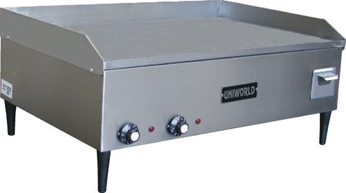 Searching for the best Uniworld UGR-2E 32inch H.D. Griddle - 220V - Dual Thermostat; Congratulations! Check the specifications, features and feedback from customer feedback include price controls and information more satisfactory Uniworld UGR-2E 32inch H.D. Griddle - 220V - Dual Thermostat product reviews! Thick polished steel plate Stainless steel front, sides and grease trap 3in wide grease trap 4in high legs standard DUAL thermostat controls Thermostat control 150 F - 500 F All body and frame are made of stainless steel Measures: 33.5 L X 23 W X 13.5 H Electricals: 220V, 5000w, 22amps Weight: 105 lbs ETL, NSF Approved