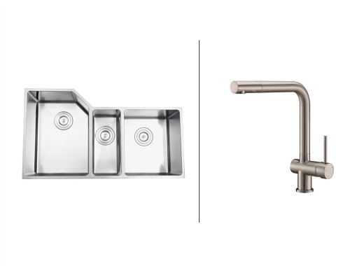 RVC2585 Stainless Steel Kitchen Sink and Brushed Nickel Faucet?Ruvati sink and faucet combos are designed with you in mind. We have packaged one of our premium 16 gauge stainless steel sinks with one of our luxury faucets to give you the perfect combination of form and function.